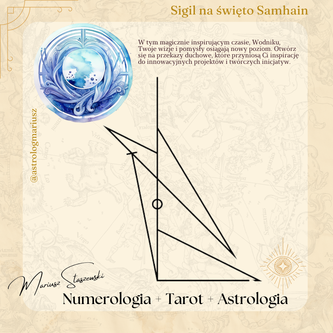 💡 Samhain i Wizje Wodnika 💡Podczas Samhain, Wodniku, Twoja wyobraźnia i zdolność do innowacji osiągają szczyt. To czas, aby połączyć się z duchami przodków i zainspirować się nowymi wizjami na przyszłość. Jak użyć sigila: Skup się na sigilu, wizualizując nowe pomysły i inspiracje. Umieść go w swojej przestrzeni twórczej, aby wzmocnić proces tworzenia i innowacji.